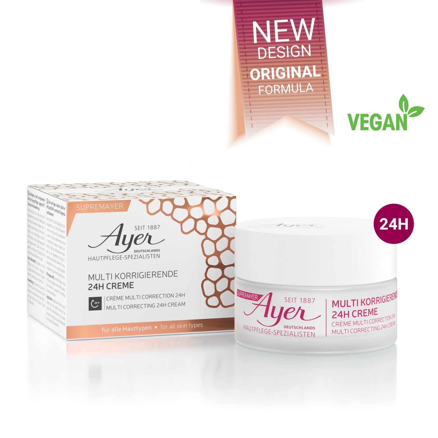 De luxe SupremAyer 24h Multi Correcting Cream is je dagelijkse krachtpatser tegen zichtbare tekenen van veroudering. Deze premium formule, ontwikkeld voor de meest veeleisende huid, combineert een actief complex van zorgvuldig geselecteerde ingrediënten uit de AYER-laboratoria die je huid beschermen, liften, herstellen en vernieuwen.